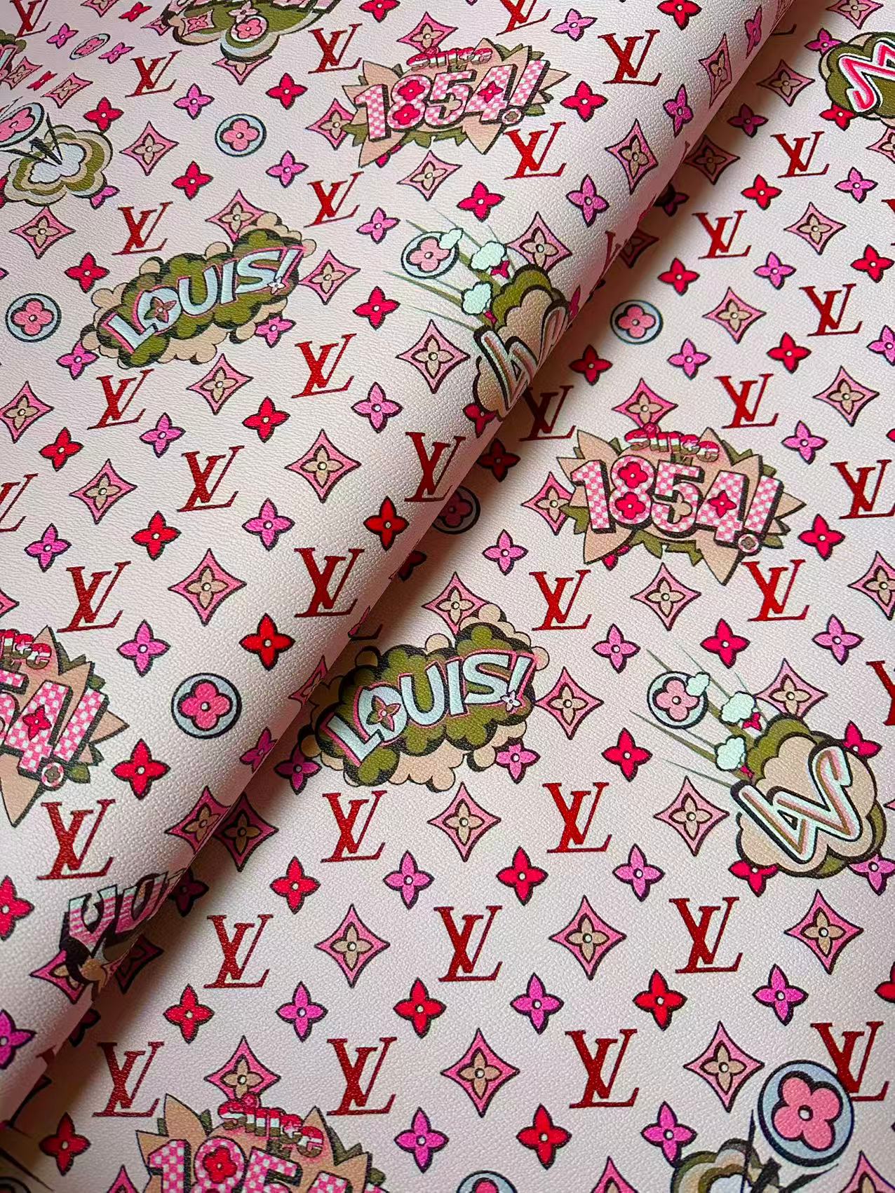 Fashion Pink LV 1854 Leather Fabric For Handmade Sneaker,Bag,Upholstery Handicraft Goods By Yard